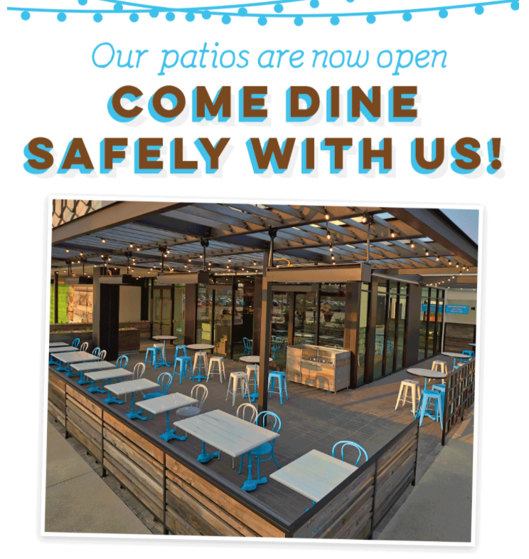We’re excited to share that as of January 29th, 2021, our patios are back open for distanced dining at all of our stores with patios!